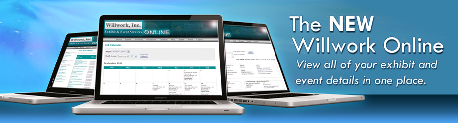 Willwork online is a free event management system developed for our clients’ to track the progress of their event schedule. Event information, labor schedule, call notes, contacts, freight information, prints, forms and photos are all organized in one central location with multiple user-friendly reporting options. This is an additional tool and does not replace our clients’ dedicated project manager and event specialist. |